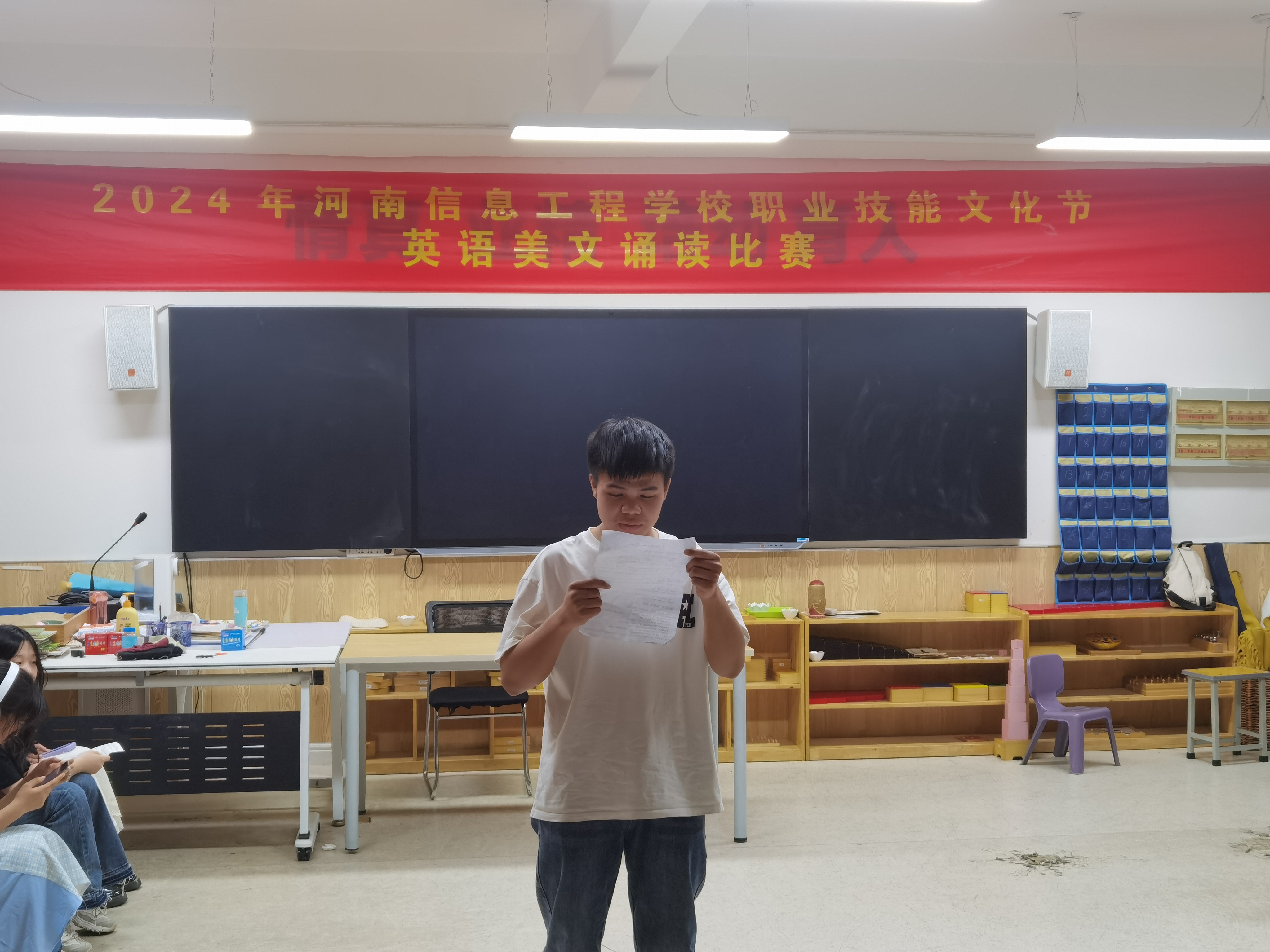 日前,我校技能文化节火热进行中。5月23日下午,经过前期精心准备,英语演讲竞赛活动在实训楼502、504成功举办。北校区在校班级共80名学生参加了此次比赛。