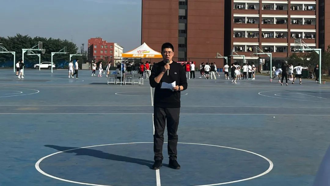 篮球比赛的序幕已经拉开,开赛的哨声即将吹响,让我们在竞争中展现青春的风彩。让我们用十分的豪情、全部的斗志,在这里绘就一道靓丽的风景!最后,预祝全体运动员取得优异的成绩。