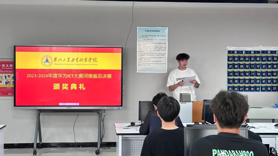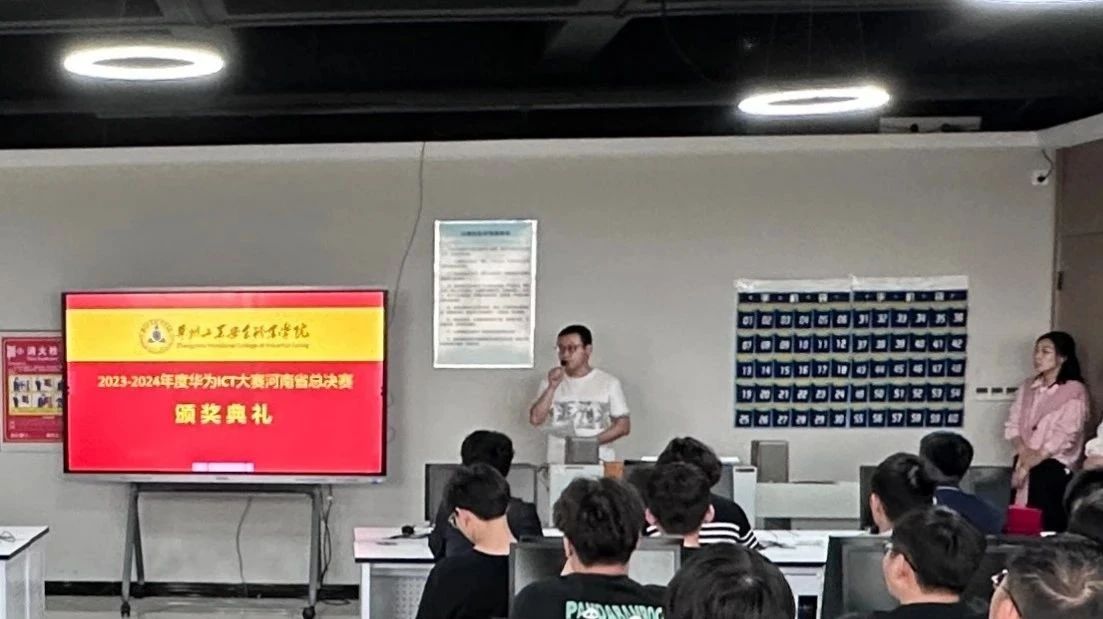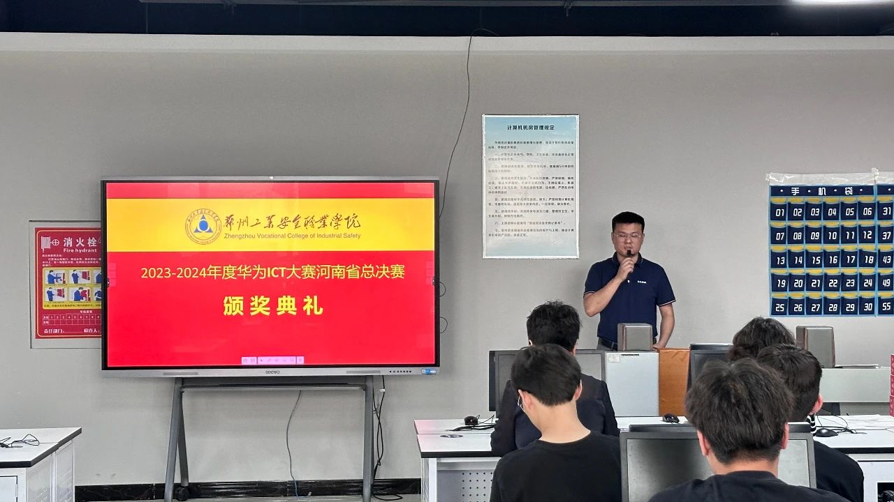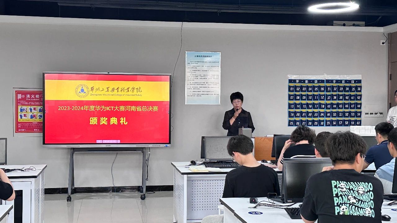2024年5月23日下午,2023-2024年度华为ICT大赛河南省总决赛颁奖典礼在我校软件技术系举行,学校荣获一等奖2项、二等奖4项、三等奖5项、优胜奖19项,共计52名选手获此殊荣,我校也是本年度华为ICT大赛河南省总决赛参赛队伍最多、获奖比例最大的学校之一,特予以表彰。郑州工业安全职业学院副校长门雅范、教务处处长史娟芬、河南合众信泰科技有限公司产教融合部经理刘军委、ICT&大数据学院院长魏晓炜等领导出席颁奖典礼并为在大赛中脱颖而出的获奖选手们颁奖。