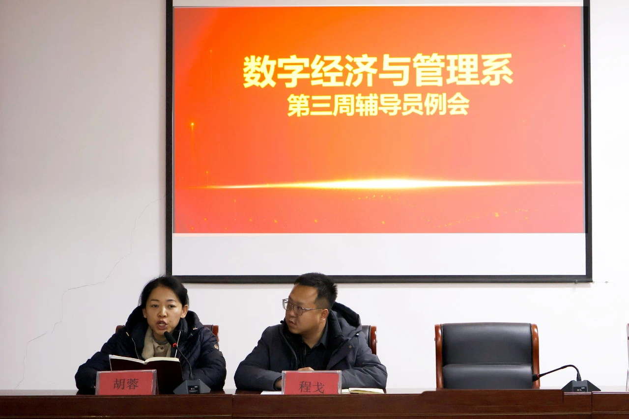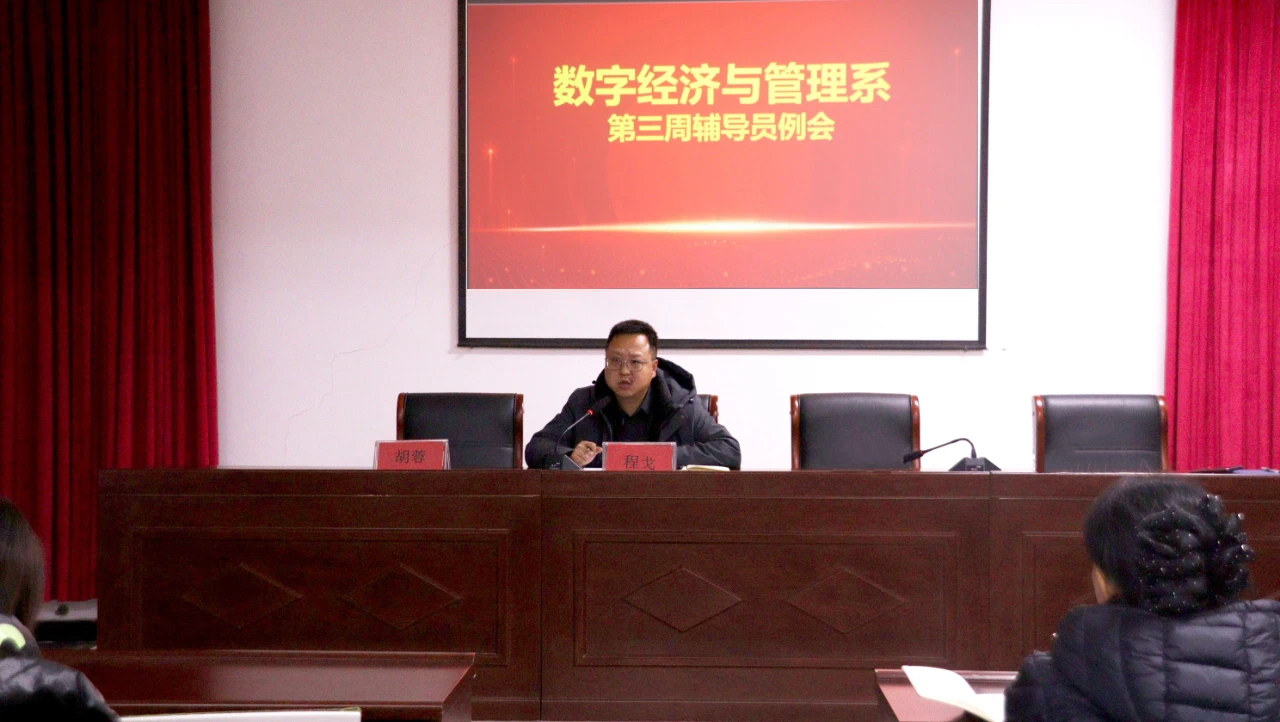 按照学期学生管理工作安排,3月4日,数字经济与管理系召开了第3周全体辅导员及班级负责人工作例会。会议由学工组长胡蓉主持,程戈副主任携全体辅导员和班级负责人参会。