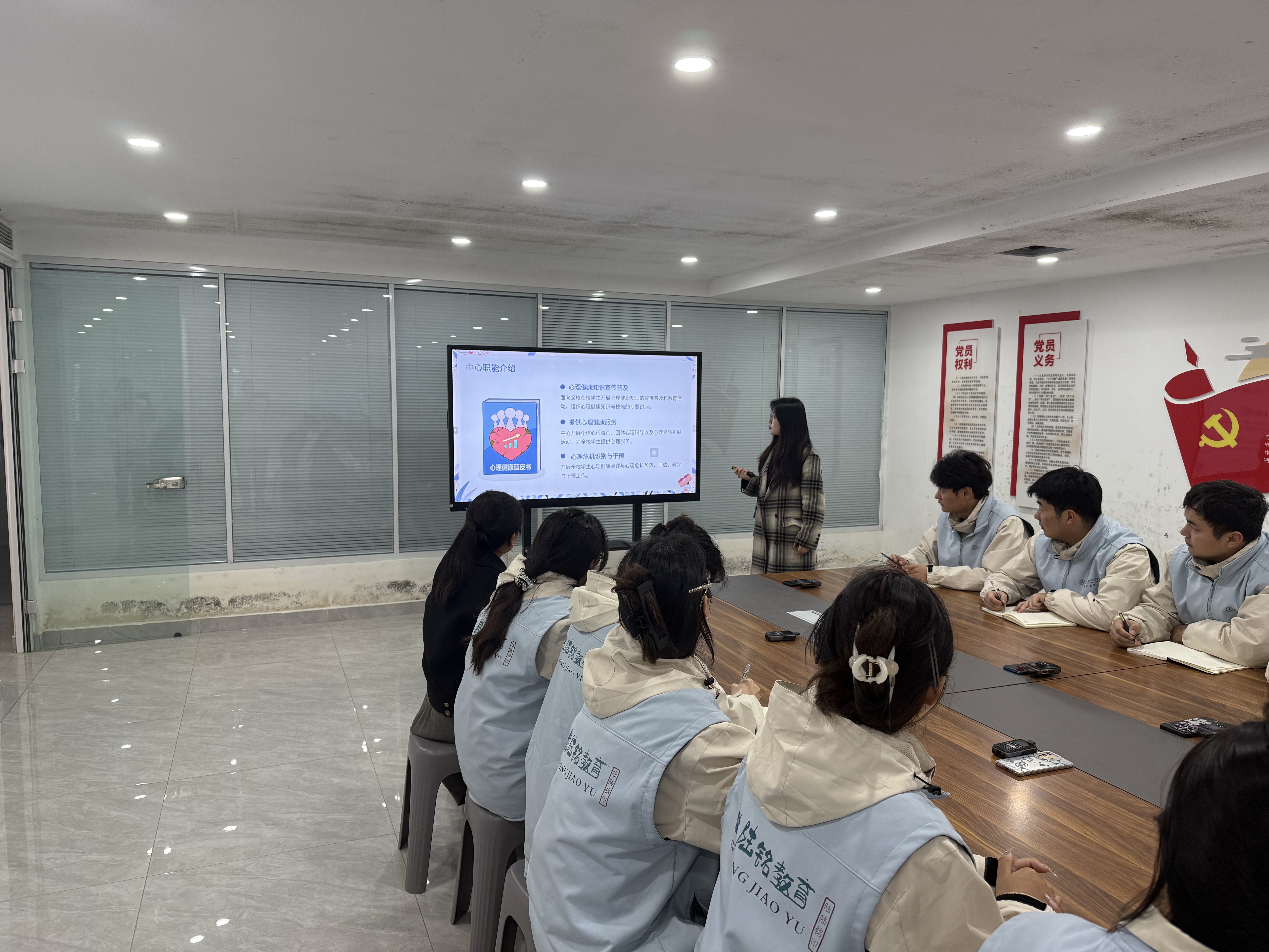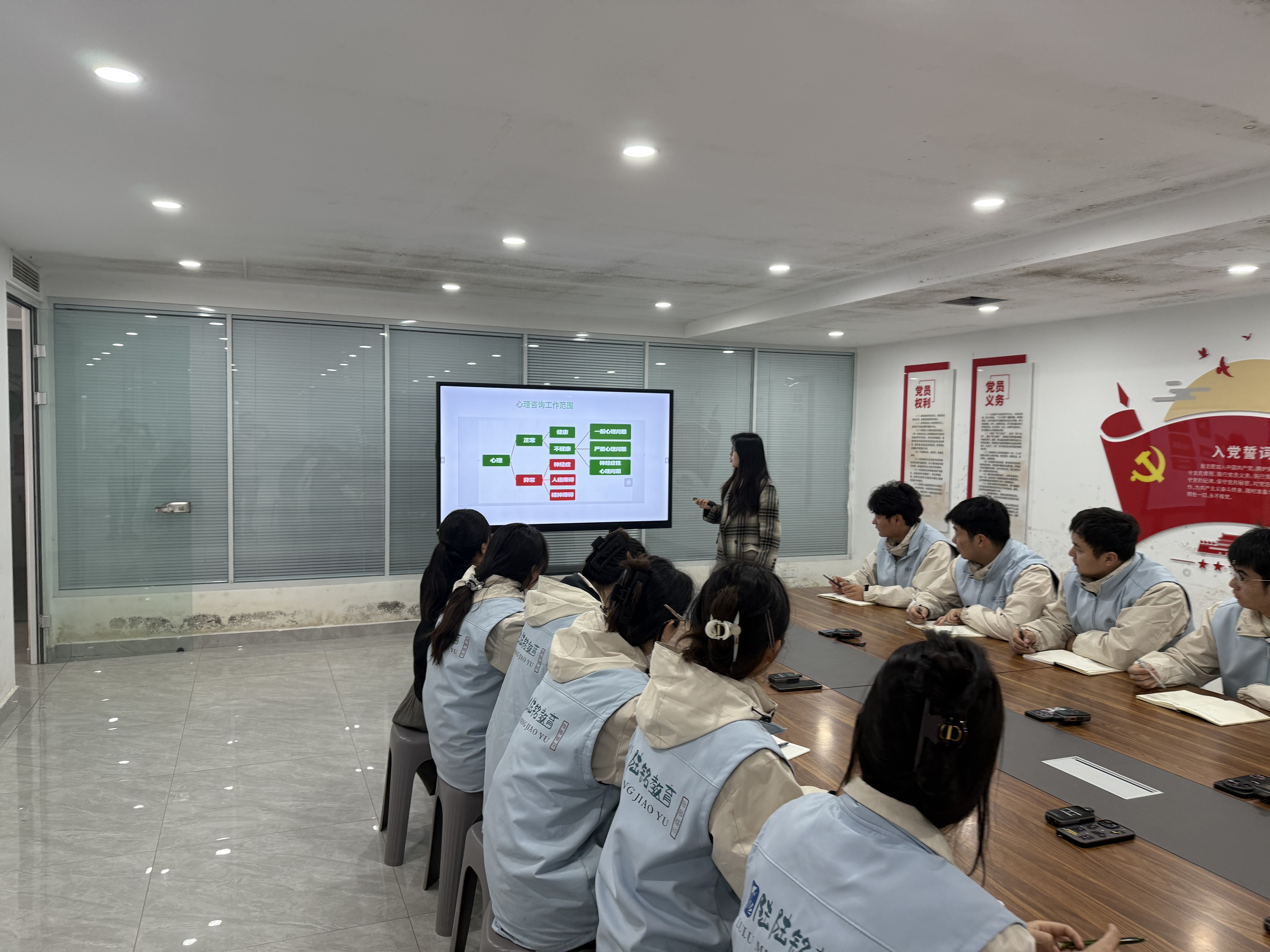 本次培训内容向宿舍管理人员介绍了心理健康教育中心的基本情况和工作职责,讲解了心理健康常识,如心理健康的标准、大学生心理发展的阶段特点等,以便向学生宣传和普及,提高学生的心理健康意识。同时了解大学生心理健康问题现状,明确宿舍环境对学生心理健康的影响,努力营造温馨、和谐、积极向上的宿舍氛围,促进学生的心理健康发展。