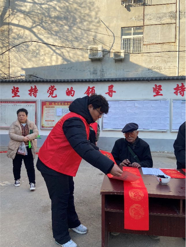 在“迎春送福,义写春联”活动中,我见证了书法老师们挥毫泼墨,创作出寓意吉祥的春联。我穿梭其间,协助收集、晾晒春联,维护现场秩序,并向居民发放春联,传递新春祝福。看到居民们幸福的笑容,我深感成就感。这次活动让我意识到传承优秀传统文化的责任重大。