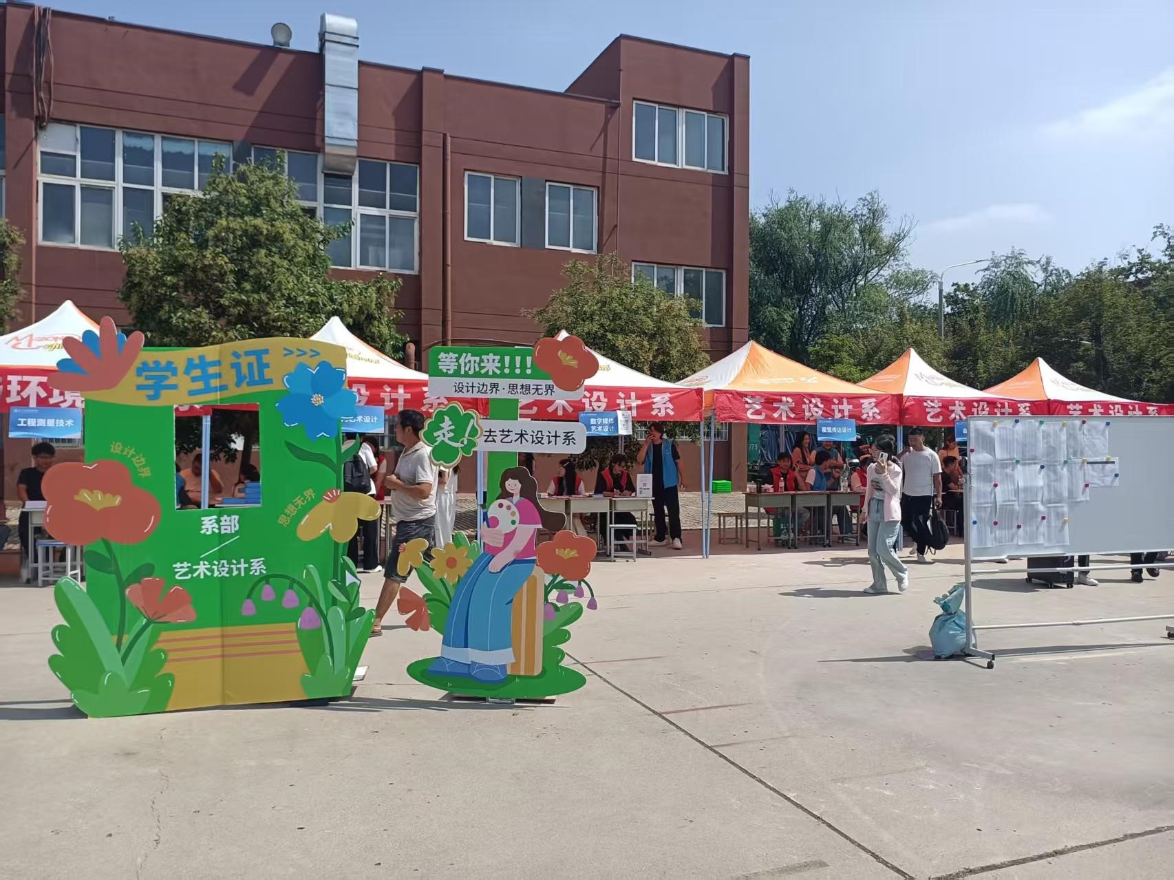 提前布置迎新站点,在学校大门、教学楼、宿舍楼设置艺术设计系专属引导牌,站点内摆放专业介绍展板、新生报到流程图,并备好饮用水等物资,营造便捷温馨的报到环境。