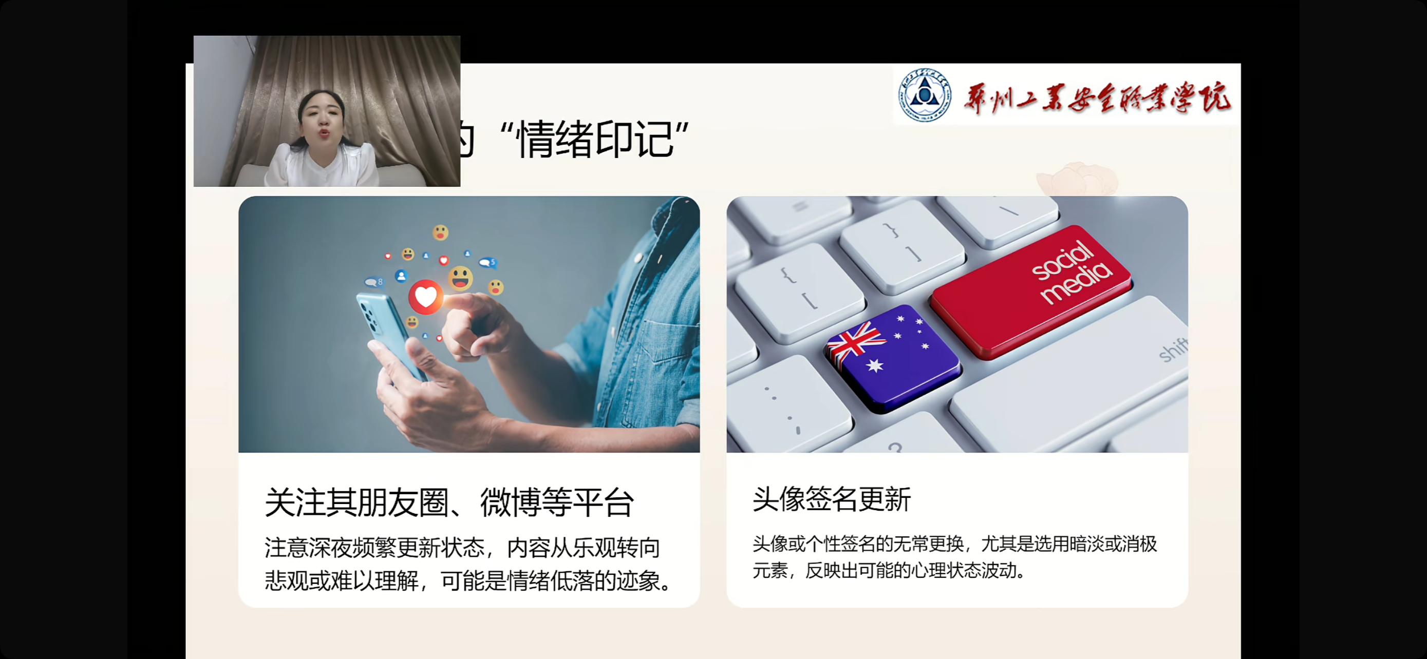 讲堂伊始,介绍了当前青少年心理健康的整体态势,着重强调心理健康是孩子实现全面发展的基石。我校长期以来高度重视学生的心理健康教育,不仅开设了心理健康必修课,还开展了“5·25心理健康月”、“10月心理健康周”、心理社团辅导等活动,提供个体咨询、团体辅导、心理测评与危机干预等全方位的服务,为学生的健康成长提供坚实保障。