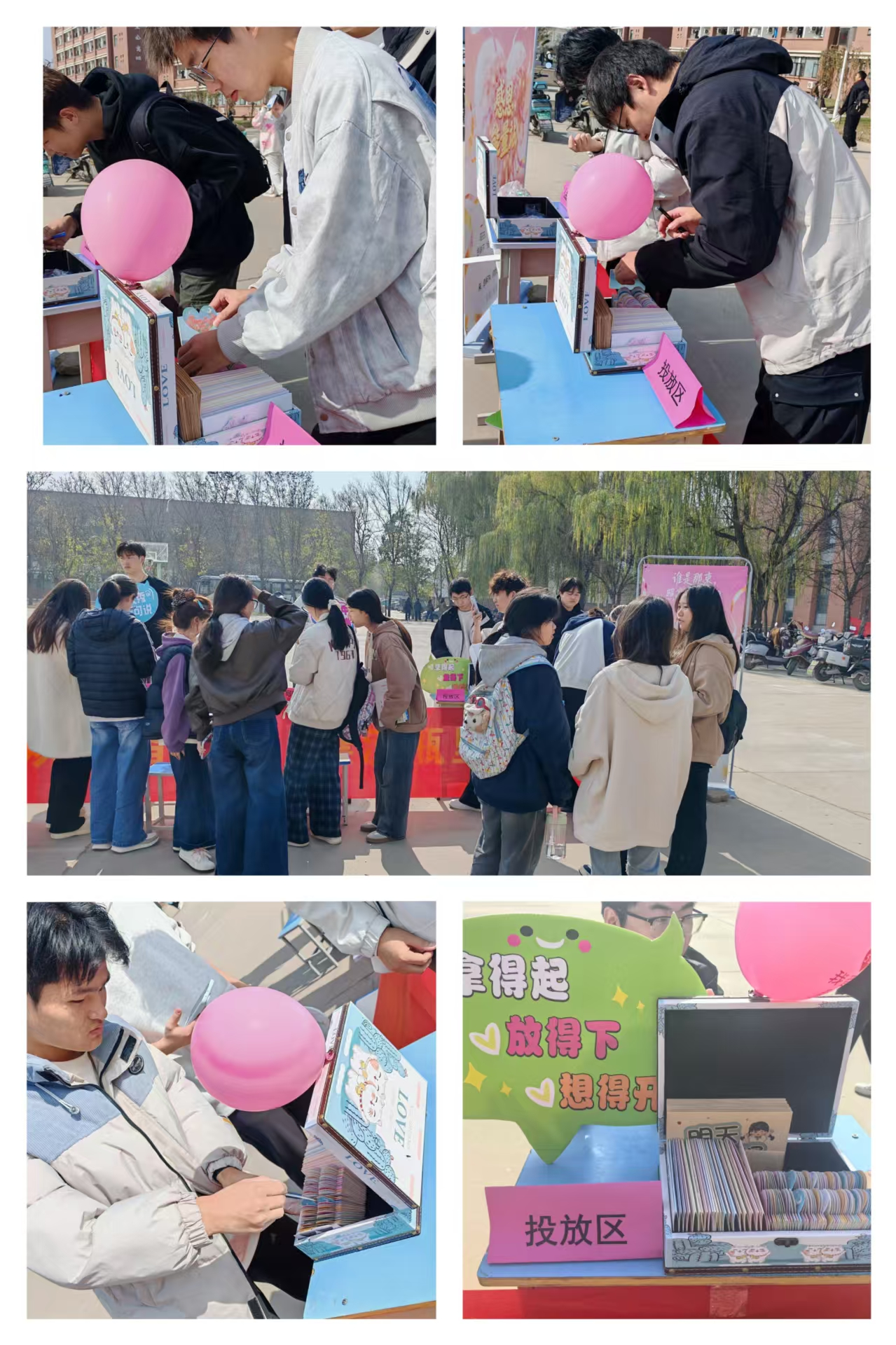 活动现场气氛热烈,学生参与度空前高涨。在“情绪漂流瓶”区域,同学们借助精美的便签纸,真诚地书写下自己的喜怒哀乐,无论是学业上的压力、人际交往的困惑,还是生活中的小确幸,都将之安放于“漂流瓶”中。这一过程为学生们提供了一个安全、匿名的情绪释放窗口,有效帮助他们进行自我觉察与情绪疏导。许多同学表示“写下来之后,心里轻松了很多”