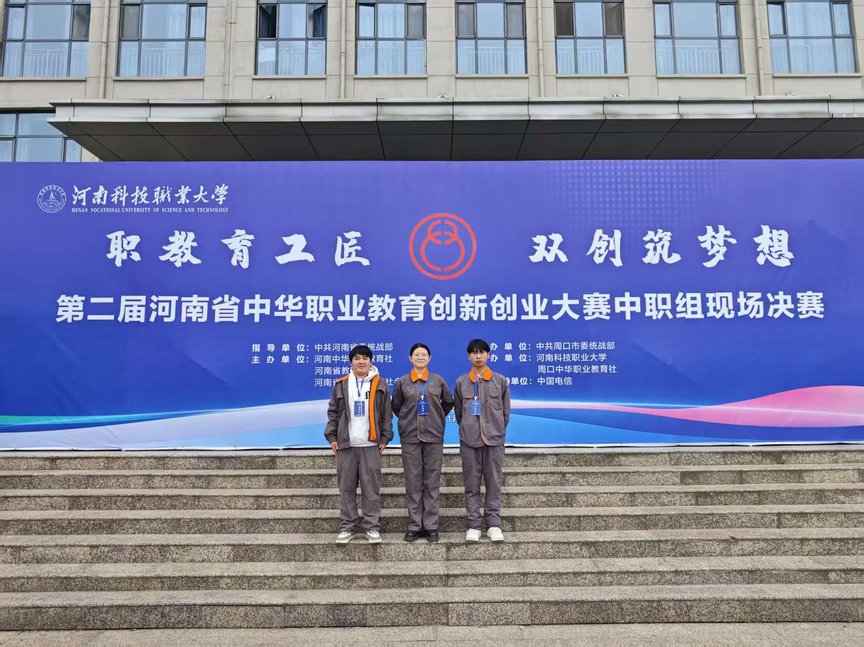 2025年11月5日至7日,第二届河南省中华职业教育创新创业大赛现场决赛在河南科技职业大学隆重举行并圆满落幕。我校信息工程系杨镇菡、何建志、刘鑫泽三名同学组成的参赛团队积极备战、沉着发挥,最终在众多参赛队伍中脱颖而出,荣获大赛一等奖,展现出优秀的综合素质与创新能力。