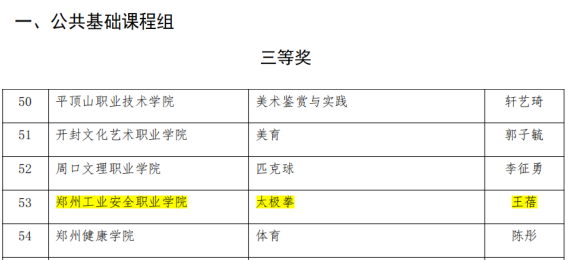 经过学校竞赛、省级网络初评和省级现场比赛的激烈角逐,大赛共评出一等奖82个、二等奖142个、三等奖197个。我校四位教师在大赛中表现优异:基础部教师张娅《高等数学》荣获公共基础课程组一等奖、机电工程系教师赵瑞杰《机械制图与CAD》荣获理工农医类课程组二等奖、资源与环境工程系教师王婷《道路工程地质》荣获理工农医类课程组三等奖、公共体育部教师王蓓《太极拳》荣获公共基础课程组三等奖,获奖数量与等次均实现历史性突破。
