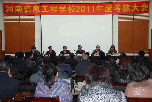 2012年2月22日,河南省工业和信息化厅反腐倡廉考核工作组刘云达巡视员一行四人莅临我校,对学校领导班子2011年度工作完成及党风廉政建设情况进行了考核,校领导、中层干部以及职工代表97人参加了会议。刘云达代表厅领导及考核组讲述了领导班子述职述廉的目的和意义。他指出通过年度考核,可以进一步规范领导干部的行为,明确党的廉政建设责任制,增强领导干部廉洁自律意识,同时要求学校领导班子成员认真对待、提高道德修养、改进工作方法、接受群众监督、正视群众评议,希望参加测评的同志实事求是、客观公正地对领导做出评价。