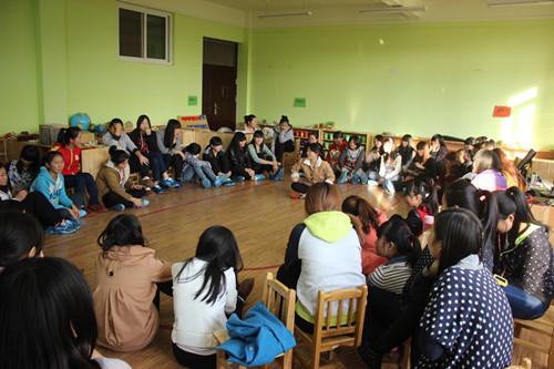 2014年11月4日,我系学前教育专业13-4班传统班学生,在为期一周的见习结束后,进行交流汇报。学生们对于本次见习都有着很深的感触,并希望在每个学期都能有这样的实地见习的机会,以增加她们的“工作经验”,达到真正的学有所用。